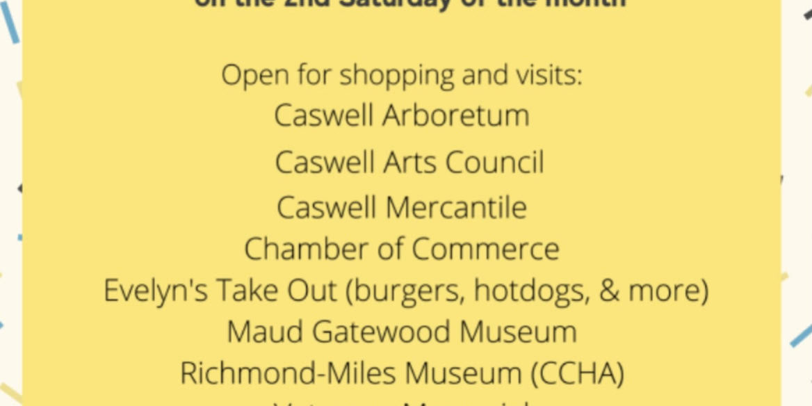 CCHA and the Richmond-Miles Museum have joined with the Caswell Arts Council, Chamber of Commerce and other businesses as part of Second Saturdays !, a program inviting everyone to Historic Downtown Yanceyville on the second Saturday of each month. The museum will be open 10am-2pm during the event and tours of the old County Jail and Poteat School will be offered for a fee. The next event is scheduled for June 12th and we look forward to seeing everyone there.